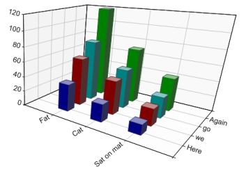 sp.SetXLabels(new string[]{"Fat","Cat","Sat on mat"}); sp.SetYLabels(new string[]{"Here","we","go","Again"}); sp.XAxisStyle = XAxisStyles.AngledLabels; sp.YAxisStyle = YAxisStyles.AngledLabels; You cannot set the angle explicitly here – SharpPlot will choose the alignment for you depending on the perspective and viewpoint used. See also ...Perspective Property | SetViewpoint Method |