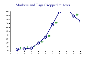 Reference > Style examples > Cropped style Cropped styleWhen you clip data to either the X or Y axes, SharpPlot removes data points that lie outside the range and segments any lines at the boundaries. However it does not physically crop the image, as you generally want to see all of a marker that lies right on the edge. By setting this style, you enforce cropping at the edges, so thick angled lines are trimmed to an oblique end and markers are only partly shown. Value tags may also be partly eliminated.