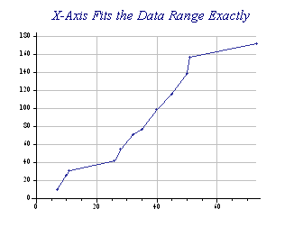 sp.SetXTickMarks(20,3); sp.Heading = "X-Axis Fits the Data Range Exactly"; sp.XAxisStyle = XAxisStyles.ForceZero|XAxisStyles.ExactFit; sp.DrawLineGraph(col_S1,col_S2); This style is currently only available on the X-axis. It is often coupled with ForceZero (as here) to make the lower value round back nicely. |