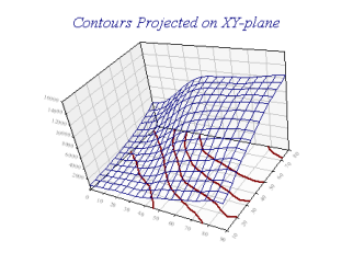 Reference > Style examples > Project Contours on XY-plane Project Contours on XY-planeContour lines on fitted surfaces are drawn on the xy-plane, rather than around the ‘hills’.