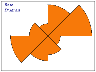 Reference > Style examples > Rose diagram Rose diagramThe Rose diagram is often used to show discrete data collected around a compass – for example orientation of pebbles in a streambed to give a feel for the direction of current flow.