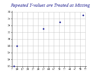 sp.LineGraphStyle = LineGraphStyles.GridLines|LineGraphStyles.SkipRepeats|LineGraphStyles.Markers|LineGraphStyles.NoLines sp.Heading = "Repeated Y-values are Treated as Missing"; sp.DrawLineGraph(col_SR,col_S2); This style could be used to eliminate long runs of identical values, typical of many data-logging devices. |