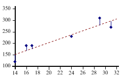 SharpPlot sp = new SharpPlot; sp.SetMargins(9,18,18,4); sp.ScatterPlotStyle = ScatterPlotStyles.ModelFit|ScatterPlotStyles.Risers; sp.SetMarkers(Marker.Lozenge); sp.SetLineStyles(LineStyle.Dash); ydata = new int[] {190,270,310,120,190,230}; xdata = new int[] {17,31,29,14,16,24}; sp.DrawScatterPlot(ydata,xdata); Worked Examples
