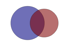 Home > Sample Charts > VennDiagram VennDiagramThe Venn diagram shows a diagrammatic view of Set membership data, using the correct proportions for the simply case with 2 populations (and 1 overlap) and a simple diagram with intersecting circles for the 3-area case.